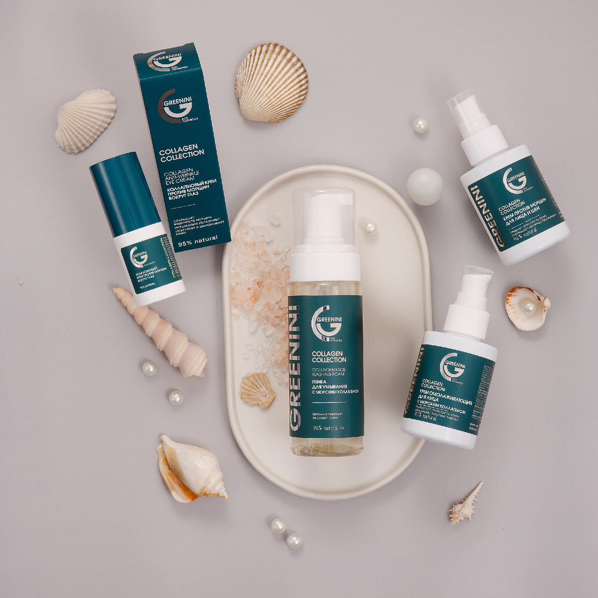 Кожа – наш самый большой орган, и с возрастом она претерпевает естественные изменения. Одним из ключевых белков, отвечающих за ее упругость, эластичность и молодость, является коллаген. Потеря коллагена с возрастом приводит к появлению морщин, дряблости и потере сияния. Бренд GREENINI, всегда в поиске эффективных натуральных решений, представляет COLLAGEN COLLECTION – линейку продуктов, разработанную для активной стимуляции выработки коллагена и восстановления молодости вашей кожи. Коллаген – это фибриллярный белок, составляющий основу соединительной ткани человека. В дерме он формирует структурный каркас, обеспечивая коже прочность, упругость и способность удерживать влагу. С возрастом (после 25-30 лет) естественная выработка коллагена в организме начинает замедляться, что приводит к: Почему именно морской коллаген? Морской коллаген, полученный из рыбьих источников, имеет структуру, наиболее близкую к человеческому коллагену. Он легче усваивается кожей, оказывая более быстрое и выраж