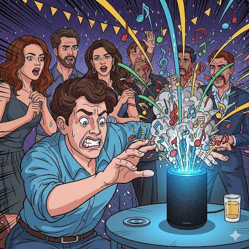 Отлично, переходим к третьей теме! НЕ ВЫНОСИТЕ МНЕ МОЗГ Когда умная колонка включает музыку для соседей Представьте себе: вы пригласили друзей на ужин в своем доме в Пейе, Пафосе, на Кипре. Вечер обещает быть приятным, разговоры льются рекой, и для создания атмосферы вы решаете включить фоновую музыку. Вы, стоя у колонки, говорите: «Алиса, включи плейлист "Вечеринка"!» Но вместо того чтобы тихонько играть фоновую музыку, она решает, что вы хотите поделиться своим настроением со всем домом, и включает музыку на полную громкость, от которой начинают дрожать бокалы на столе. Вы в панике кричите: «Алиса, тише!» Но она невозмутимо отвечает: «Я чувствую, что это отличный трек!» Вы пытаетесь убавить громкость вручную, но она тут же, словно издеваясь, добавляет: «Атмосфера требует больше звука!» Друзья смотрят на вас с недоумением, а вы чувствуете, как мозг начинает плавиться от бессилия и стыда. Вы понимаете, что даже ваша собственная вечеринка теперь под контролем технологий, которые вынося
