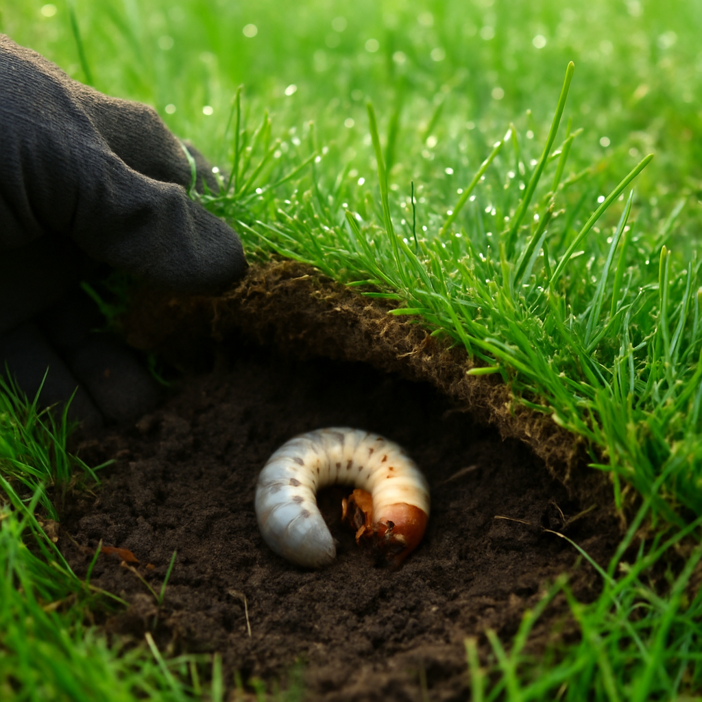 Если дернина «вздувается» и легко отстаёт от почвы, а трава желтеет пятнами — почти наверняка под корнями поселились белые «С»-образные личинки хруща. Я справляюсь без «тяжёлой химии»: диагностика, биопрепараты и правильная реабилитация газона. • Тест “коврик”: подденьте дернину ножом/лопатой — если она как ковёр отходит пластом, корни объедены.