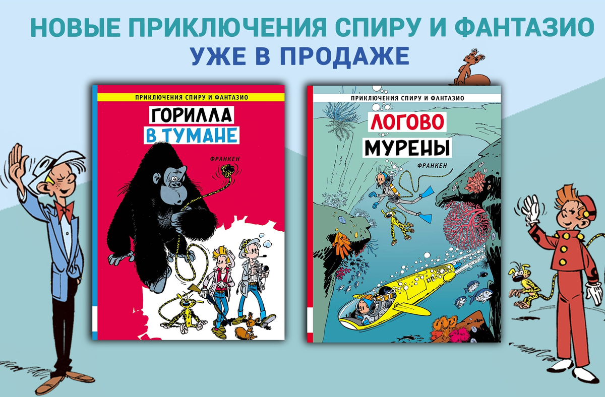 Эти истории про двух друзей - еще один удачный проект из кладовой классики франко-бельгийского комикса, чем-то напоминающий знаменитые "Приключения Тинтина". Комиксы про Спиру и Фантазио выходят уже более 85 лет, и такие долгие читательские любовь и интерес о чем-то да говорят. Спиру и Фантазио, репортер журнала "Комарик", всегда оказываются в эпицентре увлекательных событий: расследуют тайны и загадки, преодолевают козни плохих парней, путешествуют по разным необычным местам - с ними не соскучишься! Серия рассчитана на читателей 7-10 лет и станет отличным подспорьем тем, кто не очень любит читать или только начинает делать это самостоятельно - она покажет, насколько чтение может быть увлекательным и затягивающим! Всего в серии пока что 6 альбомов: "Спиру и наследники", "Похитители марсупилами" - о них подробно можно прочитать в этой статье (жми); "Дурная голова" и "Рог носорога" (о них читайте тут - (жми)), и вот вышли еще два комикса: "Горилла в тумане" и "Логово мурены"! В альбоме "
