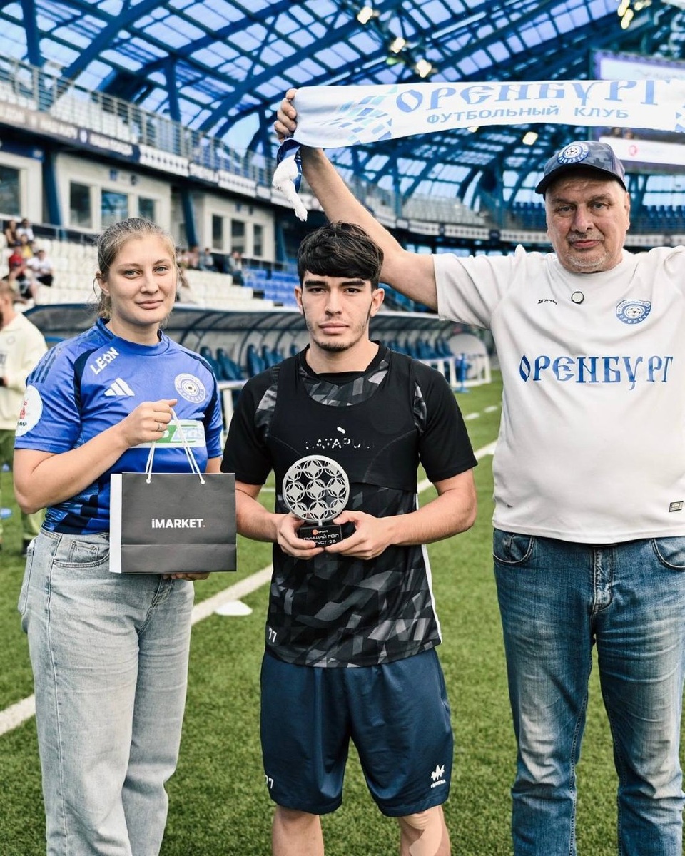 ЛУЧШИЙ ГОЛ АВГУСТА ⭐️ На открытой тренировке Ацамаз Ревазов получил памятную награду от нашего болельщика Игоря Антонова и сертификат на вкусный ужин в «Счастье и Радости». Благодарим нашего партнера iMARKET за предоставленные призы. #ФКОренбург #ЛучшийГол