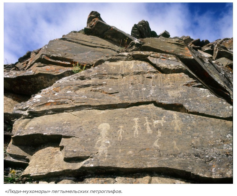 На Чукотке археологи обнаружили древние петроглифы с изображением людей с грибовидными головами. Эти изображения, прозванные «людьми-мухоморами», считаются свидетельством того, что грибные культы существовали здесь с глубокой древности. Возможно, эти фигуры изображали шаманов, находящихся в состоянии транса или мифических персонажей. В любом случае, находки подтверждают, что интерес человечества к грибам уходит корнями в тысячелетия. В отличие от славян и финно-угров Повольжья и Центральной России, которые грибы в основном использовались в быту, у народов Севера они главным образом воспринимались как средство связи с духами и потусторонними силами. Охотники и старейшины обращались к мухомору, чтобы открыть врата в мир духов, обрести пророческое видение или получить особую силу, но главное значение они имели в шаманской практике. В состоянии мухоморного транса шаман мог совершить путешествие за грань обычного сознания. Многие северные народы верили, что мухомор это «пища двух жизней»,