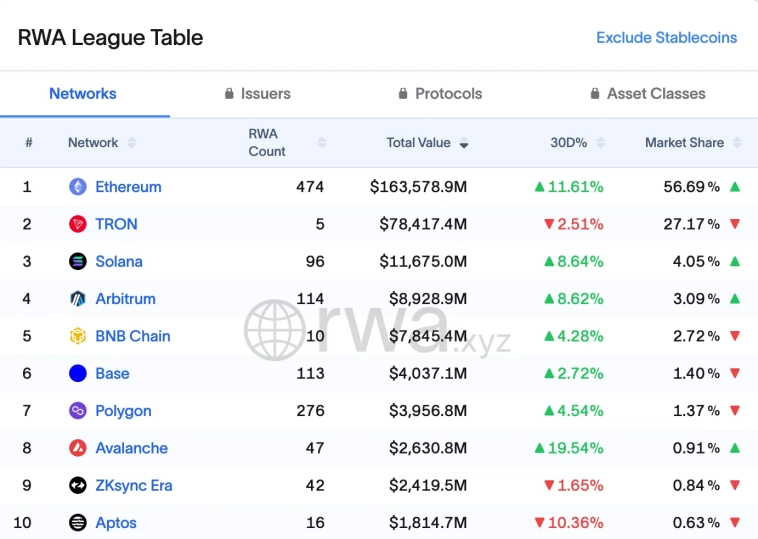 ETH, «токен Уолл-стрит», контролирует более 50 % RWA и может извлечь выгоду из токенизации активов. Но по мере того, как учреждения запускают собственные рельсы, его доминирующее положение сталкивается с реальной конкуренцией. ETH по-прежнему обеспечивает большую часть предложения стейблкоинов, но конкуренты набирают силу.