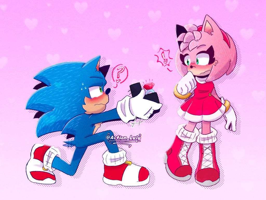 после обсуждений: друзья отдыхали : Соник : Эми , пошли а мою старую пещеру? Эми : конечно пошли я не против ! Соник : отлично ! и парочка пошли в сторону пещеры Соника : вокруг лишь деревья птички поют: и скоро ежи были в пещере Соника : Эми : твоя пещера не чуть не изменилась ! Соник : Эми , мы с тобой давно знакомы , и я влюбился в тебя с первого взгляда и с первой нашей встречи . Эми Роуз , ты выйдешь за меня замуж ? Эми : я согласна ! и парочка пошла домой и сообщили об этой новости всем своим друзьям : Салли : поздравляю вас ребята! совет до любовь как говорится , Соник : спасибо Салли . и Мэдди отвела Эми на мансарду: Мэдди: нашла ! Эми : что ты нашла Мэдди? Мэдди: своё старое свадебное платье ! и фота осталось цела спустя столько лет! и женщина одела ежихе платье и фоту : а , том помог Сонику выбрать рубашку и пиджак: и скоро Соня стала играть на своем синтезаторе свадебный марш : и из дома ваковский вышла Эми ; Соник : вау !! и скоро ежиха дошла до Соника : Тейлз им сказал п