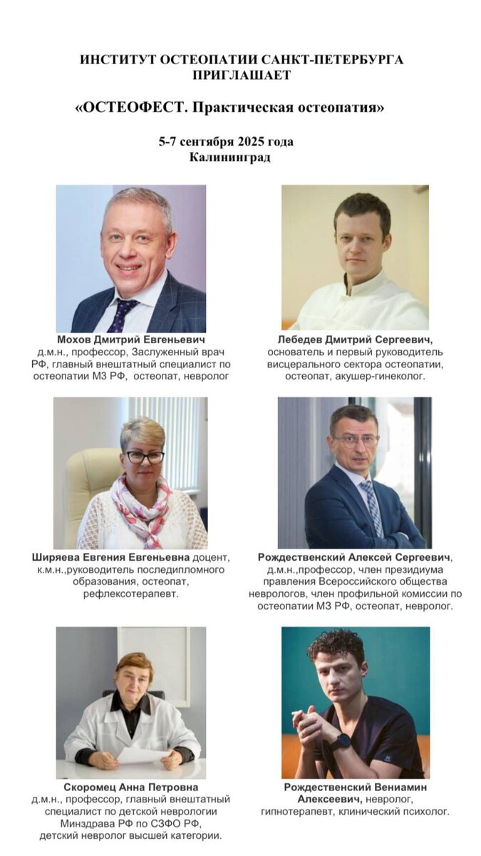 С 5 - 7 сентября 2025 г. прошла конференция "ОСТЕОФЕСТ. Практическая остеопатия" в г. Зеленоградск (Калининград) Преподаватели: д.м.н., профессор Мохов Дмитрий Евгеньевич, к.м.н., доцент Ширяева Евгения Евгеньевна, Лебедев Дмитрий Сергеевич, Рождественский Алексей Сергеевич, д.м.н., профессор Рождественский Вениамин Алексеевич, д.м.н., профессор Скоромец Анна Петровна https://dzen.ru/media/id/624638d1991c654e1bf74658/s-5-7-sentiabria-2025-g-68bed645ca98c15e38efa164 #остеопат #остеопатия #остеопатспб #остеопатлеоненко #остеофест #остеофест2025