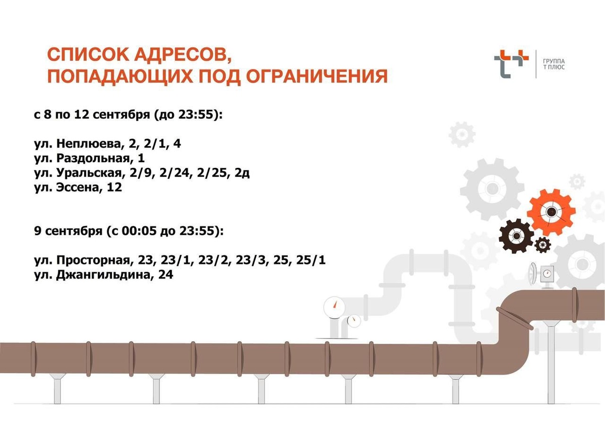 9 сентября на сутки отключат горячую воду на ул. Просторной и в одном доме на ул. Джангильдина.