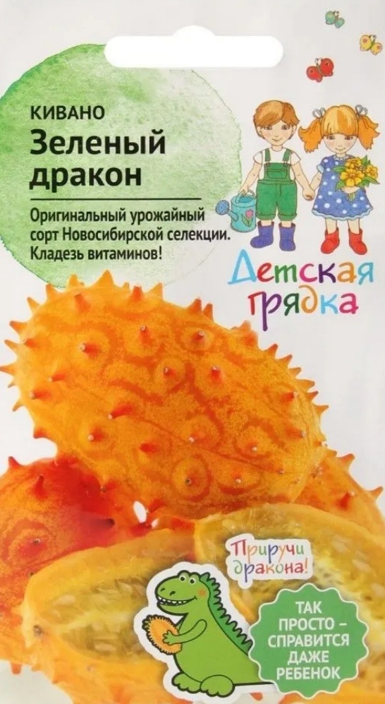 Для меня скорее уже закономерность что то находить у себя же в огороде. То сама забуду, то самосевом сто то вырастет, а бывает спрячется и не показывается пока случайно не найду )) Вот так и в этом году. Решила я посадить чудо юдо под названием кивано. Понятия не имею что это такое до сих пор 😄 Но упаковка решает всё. Имея в наличии двух драконофанатов ни секунды не думала надо оно мне или нет. Вот что пишут про него в интернете: Кивано (лат. Cucumis metulifer) — травянистая лиана семейства Тыквенные, вид рода Огурец. Другие названия: африканский огурец, рогатая дыня. Мякоть плодов зелёная, желеобразная, очень сочная, с большим количеством семян. Вкус у неё свежий, напоминает одновременно банан и огурец. Родина: центральная и южная Африка. Также растение широко культивируется в Центральной Америке, Новой Зеландии, Израиле. В России кивано также выращивают, в частности в Центральном сибирском ботаническом саду СО РАН в Новосибирске. Плоды кивано едят в свежем виде и часто использую