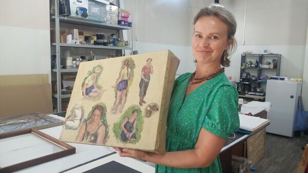 "Все графические работы, согласно правилам, хранятся в папках, каждая готовится под конкретную выставку. И сейчас я оформляю картину в паспарту и в раму под стекло, чтобы она могла экспонироваться", – объясняет она.