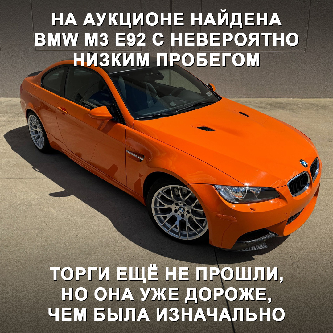 Собрано всего 200 экземпляров. Особенности автомобиля: → Огненно-оранжевый цвет. → Пакет Competition с заниженной подвеской, колёсами 19” и спортивными амортизаторами. → Карбоновая крыша, углеродное волокно и алькантара в салоне. → 4-литровый V8 на 420 л.с., робот и задний привод. → 4,6 сек. до сотни, максималка — 250 км/ч. Возможно, это M3 E92 с самым низким пробегом во всём мире. Месяц назад в ней поменяли аккумулятор и почему-то переднюю подушку безопасности, но ДТП в истории нет. Автомобиль готовится к аукциону в США. Ожидаемая цена уже превысила первоначальную цену $80 295. А за сколько на Дроме такая Бэха ушла бы? 🤔 #дромновость #аукцион #bmw #m3 #e92