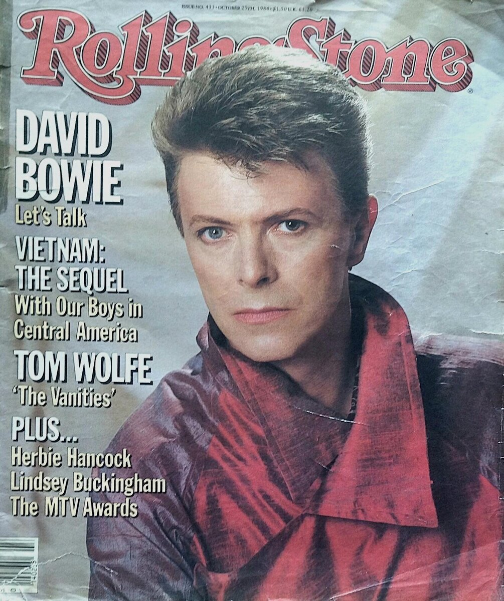 Возьму на себя смелость предположить, что в далекие без-интернетные времена, времена почти тотального дефицита в СССР музыкальной информации (я имею в виду информации о западных исполнителях) словосочетание "rolling stone" ассоциировалось у нашего меломана лишь с названием британской группы - и больше ни с чем. Откуда ему (меломану) было знать, что это ещё и название популярного американского журнала!? В основном, музыкального, но с некоторой "примесью" и других тем. Находясь в начале 80-х в длительной загранкомандировке, я имел возможность пополнять своих скудные (на тот момент) муз. архивы настоящими англо-американскими изданиями, чему и отдавался по полной - к немалому огорчению моей супруги, не одобрявшей трату драгоценной валюты на всякую "фигню". Естественно, среди моих покупок были и "Роллинг Стоун". Сегодня показываю вам один из экземпляров. Это номер за 25.10.1984 с великолепным фото Дэвида Боуи на обложке. В журнале - большое интервью с ним под