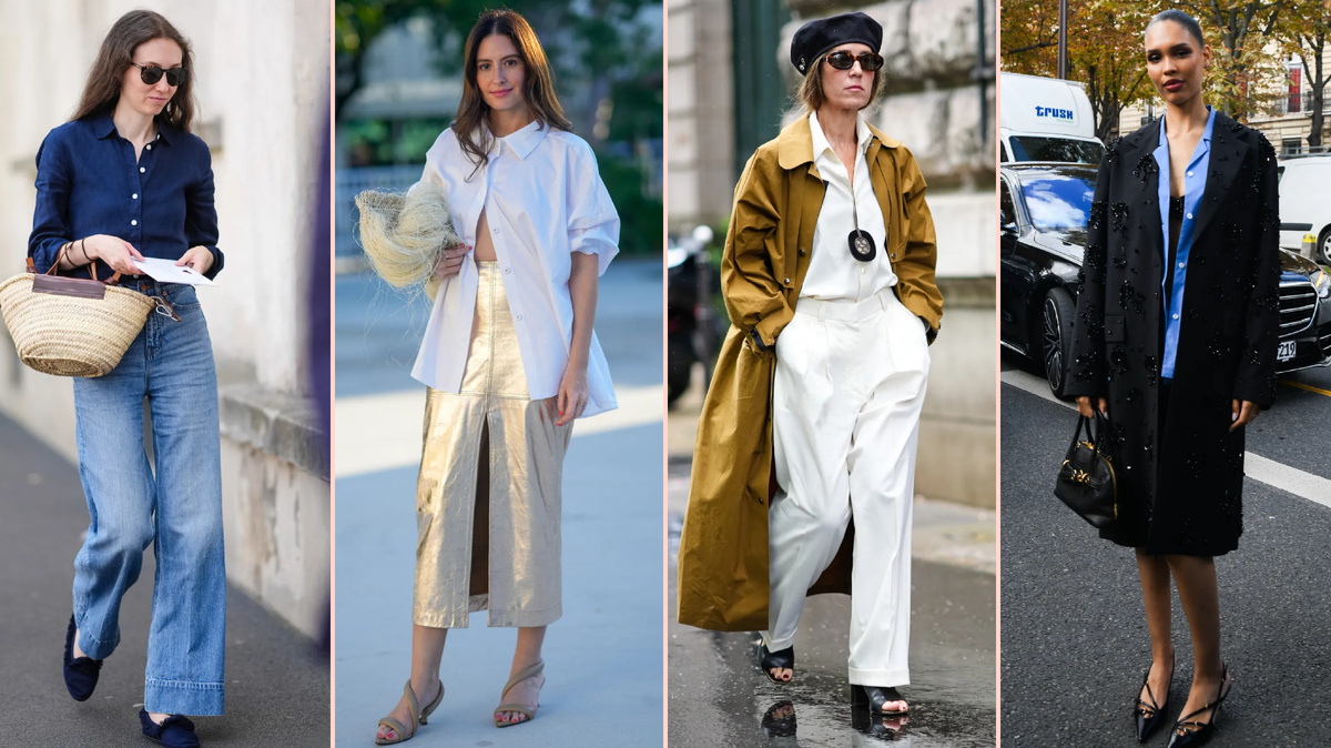 Простая рубашка стала постоянным элементом не только для работы, но и для посиделок с друзьями или бега по делам в выходные - просто благодаря ее универсальности. Для тех, кто придерживается непринужденного стиля, блузка может придать джинсам нарядный вид, но точно такая же рубашка, заправленная в брюки или чиносы, полностью меняет настроение. Чтобы дать вам представление о том, насколько универсальна рубашка, мы подобрали наряды - несколько в стиле preppy, несколько в стиле casual, несколько в офисном стиле - чтобы продемонстрировать различные способы ее стилизации. Рубашка + юбка Один из самых простых трюков, позволяющих придать рубашке свежий и модный вид, - это изменить способ застегивания. Если вы обычно застегиваете рубашку на все пуговицы, попробуйте застегнуть только несколько верхних пуговиц. Сочетайте ее с юбкой с высокой талией или брюками. Униформа французской девушки Если вы стремитесь к непринужденному стилю француженки, заправленная рубашка - самый простой способ пер
