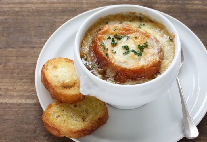 Этот суп — это не просто блюдо, это история. Секрет его успеха — в длительной карамелизации лука, которая дает неповторимый сладковатый и глубокий вкус. Ингредиенты (на 3-4 порции): · Лук репчатый (желательно желтый или красный) — 5-6 крупных головок (около 1 кг) · Сливочное масло — 50 г · Оливковое масло — 1 ст. л. · Говяжий бульон (лучше всего крепкий, домашний) — 1-1,2 л (можно заменить на куриный или овощной, но вкус будет менее насыщенным) · Белое сухое вино (например, Шардоне) — 100 мл (по желанию, но очень рекомендуется) · Сахар — 1 щепотка (ускорит карамелизацию) · Мука — 1 ст. л. · Багет или другой белый хлеб с плотной мякотью — 4-6 ломтиков · Сыр — 150-200 г (традиционно используется Грюйер, отлично подойдет также Комте, Эмменталь. Можно взять пармезан для пикантности, смешав с более плавящимся сыром.) · Соль, свежемолотый черный перец — по вкусу --- Пошаговый рецепт: 1. Карамелизация лука (самый важный этап!) · Лук очистите и нарежьте тонкими полукольцами или четверт