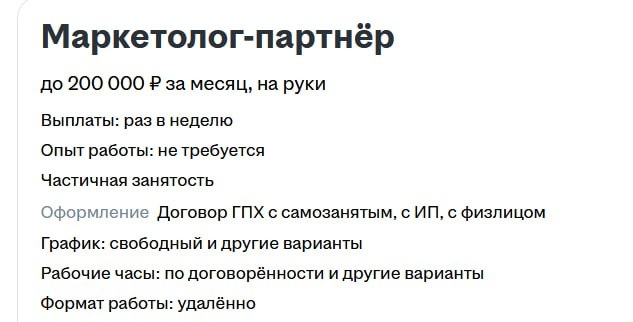 Ребятам придумавшим привлекать маркетологов в свою партнерку через HH - маркетинговый оскар. Текст вакансии и ссылка в комментах. Специалисты умеющие обходить модерацию сервисов, мое сердечко с вами ❤️ #хэхэру