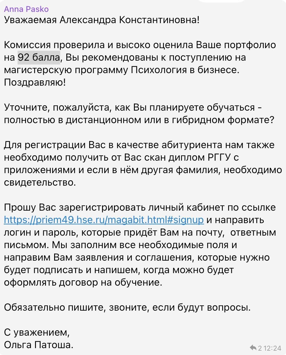 Я поступила в ВШЭ на бизнес-психологию. Чтобы вы понимали на магистратуру в этом году всего 20 мест по этому направлению. На момент поступления для меня озвучили именно это колл-во для коммерческого поступления. Что хочется сказать, вау, ура! Почему я поступила на бизнес-психологию? 1. Я сейчас в закрытом сообществе крупнейших онлайн-школ веду как создатель и ведущий группу "Интуитивное управление". Сезон еще не начался, а группа уже собрана, это говорит о спросе на эту тему 2. Я хочу написать дипломную и потом в будущем если бог даст как говорится, я напишу диссертацию на тему управления онлайн-бизнесами в условиях масштабных целей с устойчивым развитием. Я знаю, что мой опыт 11 лет точно может пригодиться и помочь, ведь я помогла не только в личной работе 450 проектам, я помогла и выстроила работу сотням предпринимателям в понимании, что все что они чувствовали, думали и хотели реализовать в проекте это и есть ключ к их развитию. На эту тему много размышлений, а пока, поже