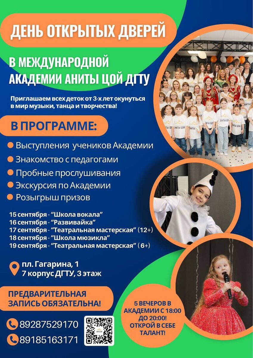 🔥 Мечтаете о ярком будущем для своих детей? Тогда мы приглашаем на день открытых дверей Международной Академии Аниты Цой ДГТУ!