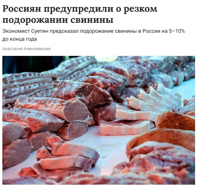 🔺🇷🇺 Экономисты предупредили, что цены на свинину в России к концу 2025 года вырастут на 5–10% из-за сокращения поголовья скота, изменить