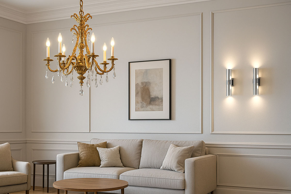 Люстра даёт общий свет, но она редко справляется одна. Вечером нужен уют, мягкие акценты, подсветка у кровати или в коридоре. Здесь вступают в игру бра — настенные светильники, которые добавляют глубины и управляемости. Однако поставить всё подряд нельзя. Классическая хрустальная люстра и ультрасовременные бра из хрома будут смотреться так, будто их купили на разных планетах. А ещё есть риск пересветить комнату, повесить бра слишком низко или получить «офисный эффект», если источники дают разную температуру света. Грамотное сочетание люстры и бра делает интерьер цельным, управляемым и удобным. Днём можно залить комнату светом, а вечером оставить только мягкое сияние на стенах. 👉 Полные правила, ошибки и практические советы — читайте в нашей статье на сайте