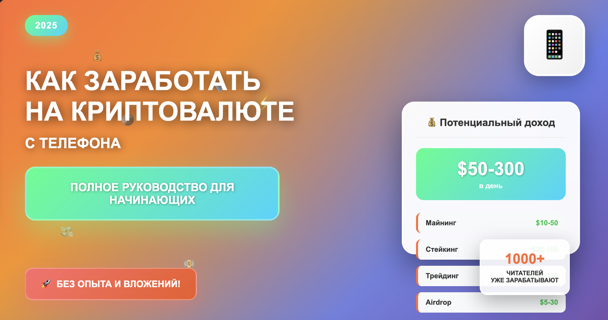 Заработок на криптовалюте с телефона — это реальность 2025 года. Главное: