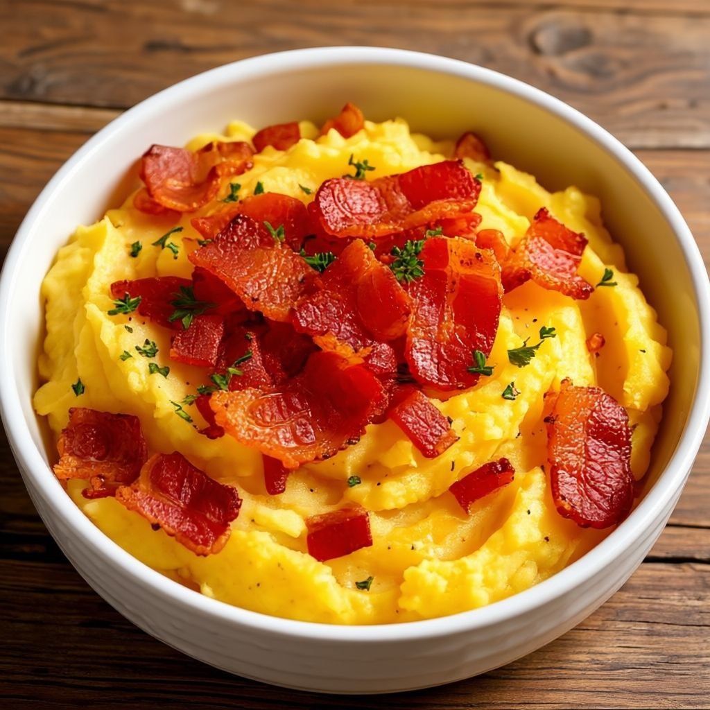 Готовим идеальное картофельное пюре с сыром и беконом за 15 минут