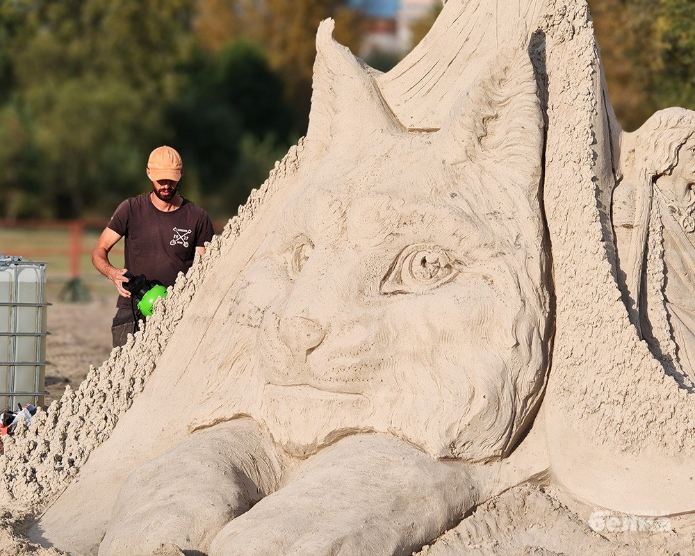 символ нашего города – рысь. По словам минчанина Юрия Бирина-Павлова, работать с песком, особенно в хорошую погоду, приятно. Но есть и свои подводные камни: «Форма скульптуры обязательно должна напоминать пирамиду. Это важно