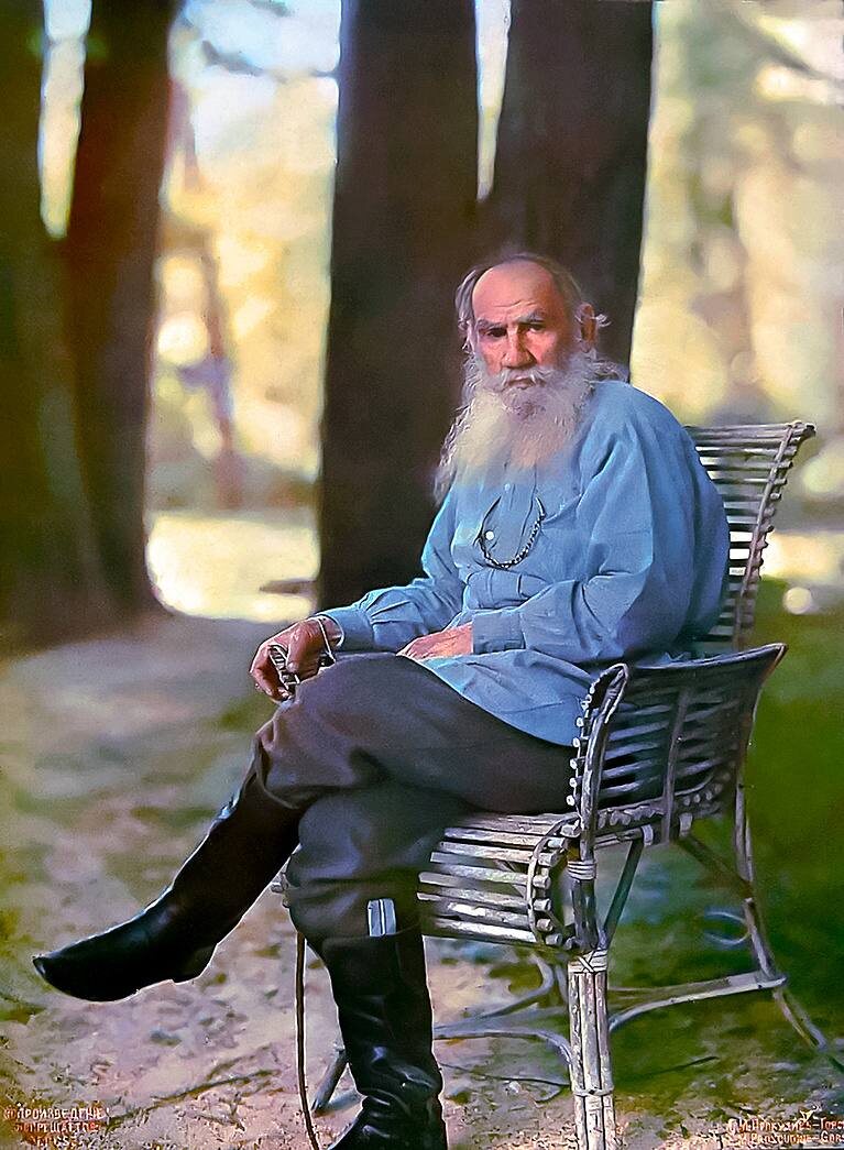 Портрет Льва Николаевича Толстого, 1908 год Единственный цветной портрет Льва Толстого относится к числу самых ценных и известных фотографий Прокудина-Горского. Снимок сделан 23 мая 1908 года, незадолго до 80-летия писателя. В начале месяца Прокудин-Горский — к тому времени авторитетный ученый, широко известный и в России, и за рубежом, — написал Льву Толстому письмо с предложением сделать его цветной фотопортрет. Разрешение на приезд было получено. В Ясной Поляне Сергей Прокудин-Горский провел два-три дня и сделал несколько фотографий Льва Толстого и его имения. Однако большая часть оригиналов этой серии была утрачена. Цветоделённые негативы сделанных Прокудиным-Горским портретов Льва Толстого не найдены. #ОбъективПГ Ещё больше фотографий в tg: Прокудин-Горский