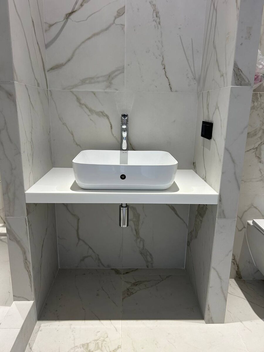 Тумбочка под раковину Чем инвест-дизайнер отличается от просто дизайнера. И как я правильно экономлю деньги заказчику. 💵💵💵 На проекте #чкалов была непростая задачка: найти мебельное решение, которое бы оптимально подошло под готовую столешницу с раковиной. Нюансы: 🔵неизвестно, есть ли закладные для установки навесной тумбочки. Плюс нет понимания, как идут трубы за стеной. При навеске можно просверлить не то. 🔵санузел очень компактный, корзину для белья реально поставить негде. 🔵вариант под заказ не рассматривали, потому что это на порядок дороже, а апарты под аренду. Решение: 🟣перерываю очень много интернет-магазинов, нахожу готовые напольные тумбочки, в которых есть встроенная корзина для белья 🧺 По размерам все было четко, был даже запас. Что по факту: 🔵По факту размер корпуса, указанный на сайте чуть-чуть больше. Не влезает. 🔵с мастером принимаем решение разобрать и собрать внутри. Не пилить. Столешницы имеет Г-образную форму. И внутри как раз высоты достаточно,