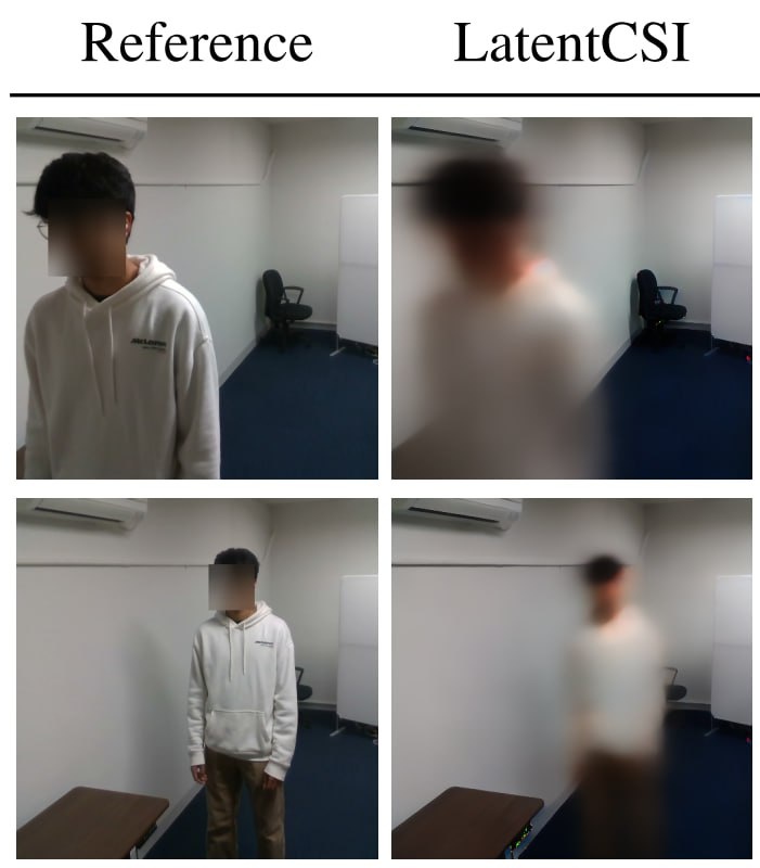 Ученые сделали нейросеть, чтобы шпионить за помещением через Wi-Fi LatentCSI — это новый метод получения изображений с помощью Wi-Fi. Алгоритм берёт данные о том, как радиосигнал проходит через пространство, переводит их в латентное пространство, подаёт в диффузионную AI-модель, и та уже генерирует картинку. На выходе получается изображение того, как выглядит помещение. В тестах LatentCSI показал себя лучше конкурентов: картинки получаются чётче и качественнее, а работает метод быстрее. Моделью можно управлять текстовыми подсказками, уточняя, как именно должен выглядеть финальный результат. https://arxiv.org/abs/2506.10605