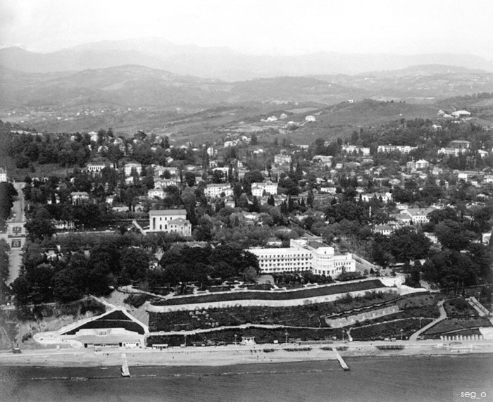Гостиница «Приморская» — первая и долгое время единственная гостиница на советском курорте, построенная на месте Сочинского музея краеведения. До революции в Сочи было много частных гостиниц, но после 1921 года все они были национализированы и переоборудованы в санатории – основной формат размещения в городе на долгие годы. «Приморская», открытая в 1936 году, оставалась единственной гостиницей вплоть до 1960-х годов. Главный закруглённый корпус с двумя крыльями расположен на Приморском бульваре. Архитектура здания выполнена в стиле постконструктивизма, хотя многие ошибочно относят его к неоклассицизму или «сталинскому ампиру». В годы Великой Отечественной войны, как и многие другие учреждения, «Приморская» была переоборудована в госпиталь. Об этом напоминает памятная табличка на фасаде здания. В 1962 году, в связи с резким увеличением турпотока, возникла необходимость в расширении гостиничного фонда. Был построен дополнительный 4-этажный корпус в стиле советского модернизма. После мног
