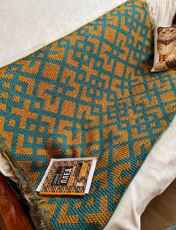 Вышивка в мозаике. Новости наших чатов Елена связала плед — смотрите, какие цвета🔥 Это схема из чата «Вышивка в мозаике», который я создала в процессе работы над книгой «Самый родной узор». Елена, спасибо! Елена: «Вес 2.7кг. 150см на 210см. ВТО еще не прошли. После стирки все разровняется и подвытянется немного. Супер. Сегодня спим под новым пледом!» Вышивка в мозаике: чат и схема https://t.me/+nlTq5jOtyh4xNDIy