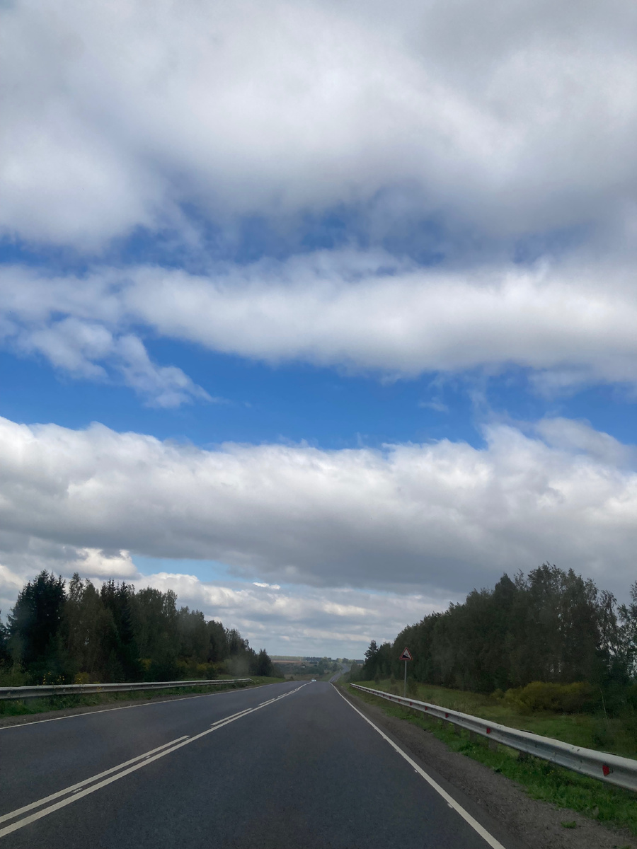 Осень, желтые листья, тепло, мы шли и радовались красивым видам.