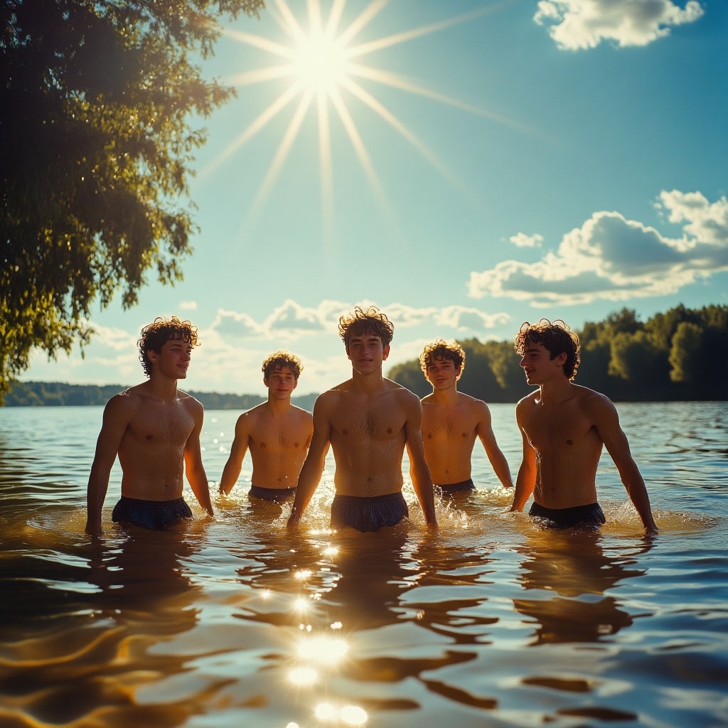 Раздевшись на берегу, мы бросились в воду. Вода была прохладной и свежей, она смывала усталость и пыль с наших разгорячённых тел. Мы плескались, брызгались, ныряли, стараясь достать до дна, усыпанного гладкими камнями.