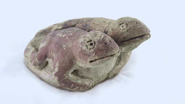 В Перу, в 110 км к северу от Лимы, археологи обнаружили удивительную статуэтку. Находка сделана во время раскопок в Вичаме, археологическом памятнике, относящемся к культуре Караль. Культура Караль, или Норте-Чико, расцвела почти 5000 лет назад, то есть примерно в то же время, что и Древний Египет. В период наибольшего подъема эта цивилизация включала около 30 городских центров на побережье современного Перу, связанных торговлей, сельским хозяйством, рыболовством и религией. Примечательно, что Караль процветал, не используя керамику и не ведя масштабных войн. Около 1800 года до н.э. в Вичаме находился сельскохозяйственный и рыболовный центр, и археологи почти 20 лет изучают этот памятник. Обнаружено множество крупных сооружений – общественные здания, жилые дома и церемониальные площади. Особое внимание ученых недавно привлекла хорошо сохранившаяся глиняная фигурка длиной 12, 5 см – изображение двух лягушек, соединенных задними лапками. Произведение такого рода впервые найдено на террит