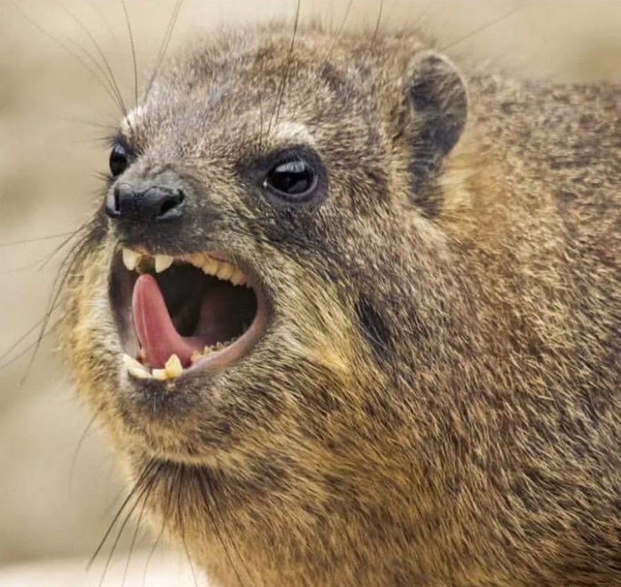 Смотрите, какой сердитый. Хотя так-то да, будешь тут сердитым, когда у тебя вся родня ого-го какая – слоны, дюгони да ламантины, а ты – даман в 2-3 кг весом. Ну обидно же. Да-да, ДНК-анализ действительно подтвердил, что даманы, слоны, ламантины и дюгони произошли от общего предка, жившего около 65 миллионов лет назад. Сейчас же наши обиженные герои живут в предгорьях и горах африканского континента и Ближнего Востока, и окраска их шерсти зависит от региона обитания – есть совсем светленькие, а есть более тёмные и даже пятнистые. Но даман пусть и мал, но тоже просто так врагу не сдаётся. На спинке у даманов есть особая зона, которую видно даже со стороны, ведь шерсть там несколько отличается от остальной по цвету и фактуре и при испуге встаёт дыбом. А в основании волосков располагаются пахучие железы, секрет которых призван отпугнуть врага. Сразу скажу, мало кого из хищников этот финт спиной останавливает. Этим же веществом даману полагается помечать свою территорию: делать это спиной с