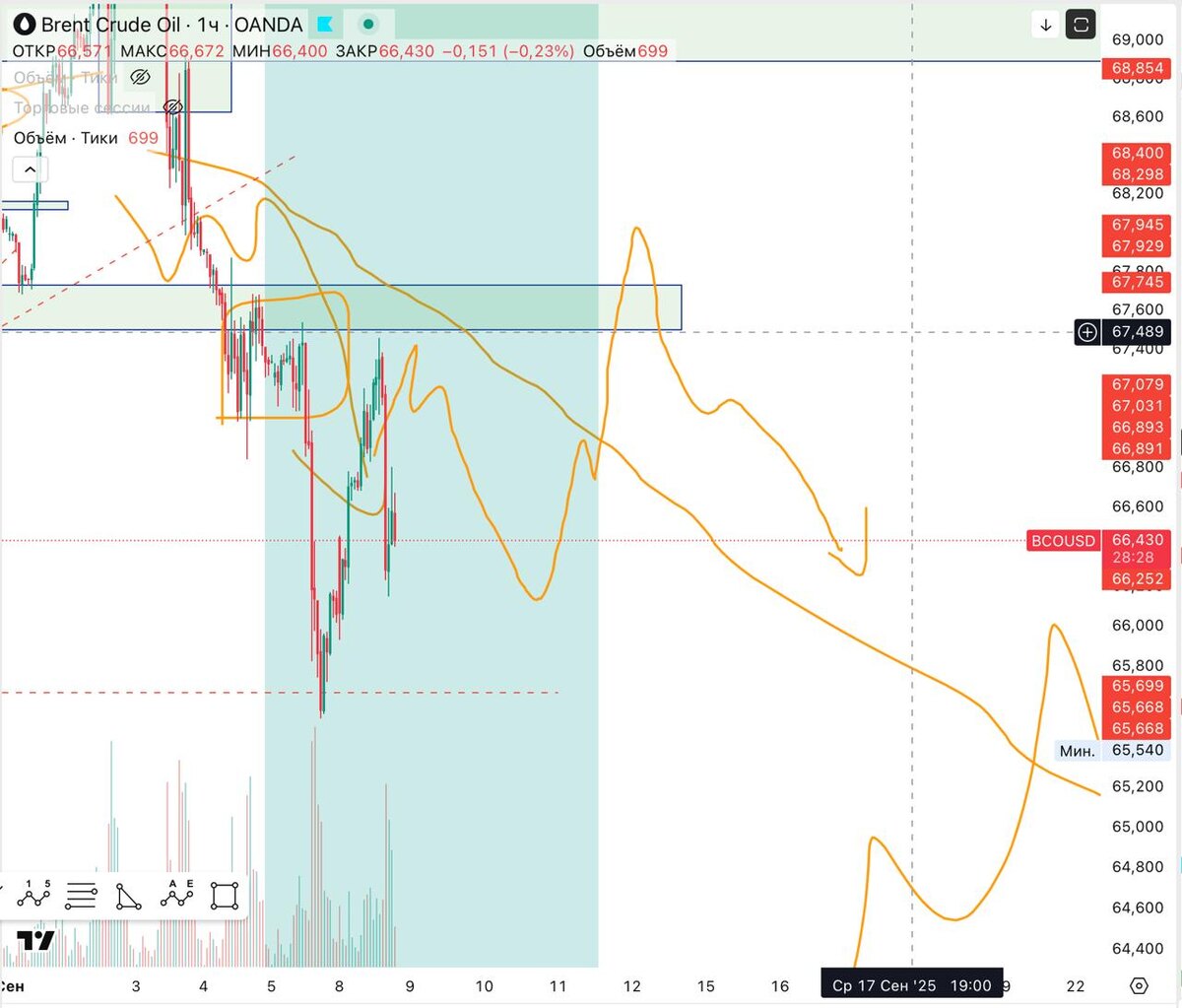 Нефть. Аналогично - по плану. Дает второй шанс тем кто прозевал лучшую точку входа