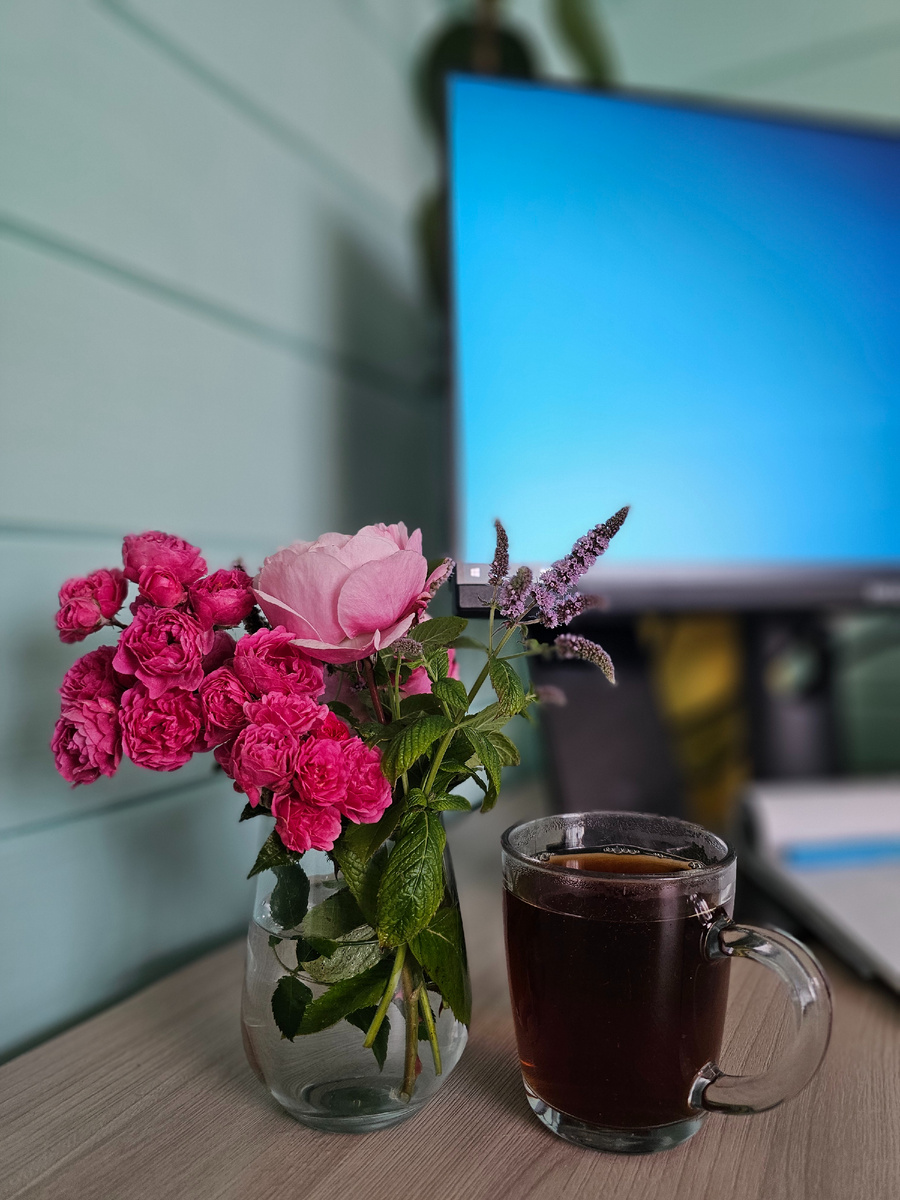 Утро этого понедельника было не бодрым. Заснула вчера поздно, а проснулась стандартно, в 7. Общее время сна - около 5 часов. Еле поднялась с кровати. Проводила своих на работу и в сад. Алиса поправилась, поэтому решили, что пора наведаться в новую группу и втягиваться в привычный ритм. Вспомнила, что кофе закончился. Оптимизма на день сегодняшний мне это не добавило. А тот факт, что после недельного перерыва нужно включаться в работу добил его до нуля😪 Поныла немного и взяла себя в руки. Вышла на улицу за новым букетом. Один срезала себе на рабочий стол, чтобы поддержать боевой дух и добавить красок. Второй поставила на стол в гостиной. Гортензии у меня уже отцветают, а эта белая веточка, видимо, только распустилась. Добавила очиток и получился такой простой и спокойный букет. Эх, что я буду делать, когда цветы в саду закончатся? Пока возилась с цветами пришло время загружать рабочий компьютер и приступать. Завтрак приготовить не успела, часов в 11-ть перебилась парой бутербро