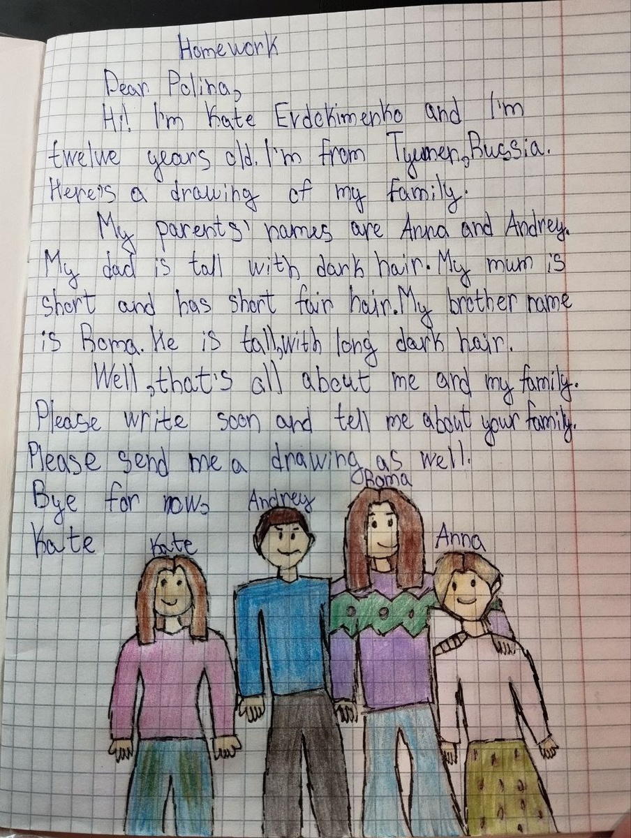 Домашка по английскому у дочки: написать кратко о семье и нарисовать