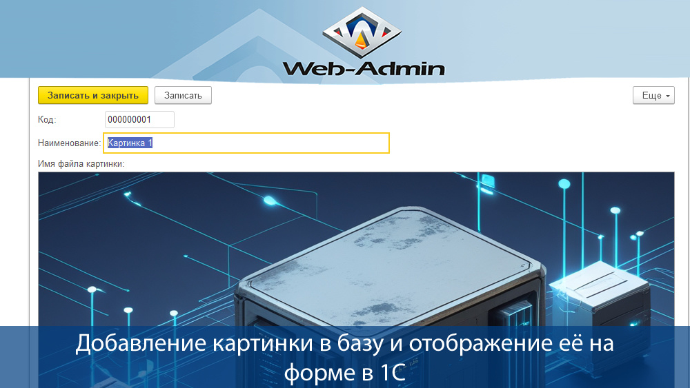 Картинка должна начать отображаться на форме. Но это ещё не всё. Картинка пока находится во временном хранилище. Теперь её нужно сохранить в базу данных и для этого пишется следующая процедура на событие формы ПередЗаписьюНаСервере