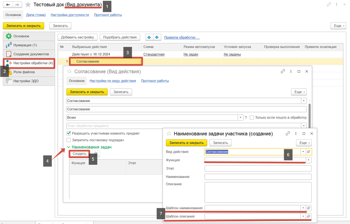 4. В открывшемся окне Вид действия, раскрываем в нижней части формы Наименования задач.