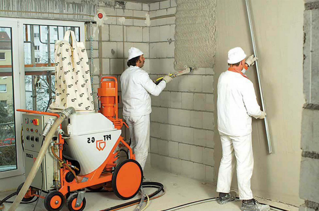 Самый популярный материал для механизированной штукатурки стен внутри помещений.