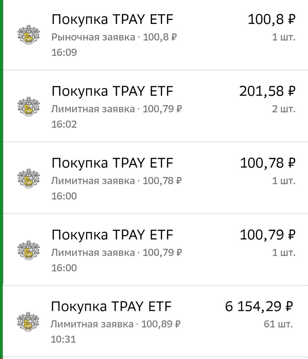 Уже второе дерево под окном стало полностью желтым 🍁 люблю золотую осень, и настроение у меня в последние дни очень классное, я даже могу сказать, что я счастлива) не из-за чего-то, не из-за каких-то событий, а просто появилось фоновое ощущение счастья, которого у меня не было уже очень давно. Сегодня понедельник, новая неделя и новые покупки на фондовом рынке. Рынок снова подрос, стоимость акций мне не очень нравится, подожду коррекции и снижения, а пока покупаю фонды. Всего я держу паи 4 фондов: 3 от Сбера, один от Тинька (Т-инвестиции, Т-банк, как он сейчас называется). Последний - это TPAY ETF с ежемесячными выплатами. Моя первая цель по нему - чтобы фонд покупал себя сам. То есть чтобы ежемесячной выплаты по нему хватало на покупку еще хотя бы 1 пая. Так что сегодня я купила 66 лотов TPAY ETF Выплаты по фонду ожидаемо снизятся вместе со снижением ключевой ставки, которое, скорее всего, случится в эту пятницу, но, думаю, общего количества паев у меня все же хватит для по