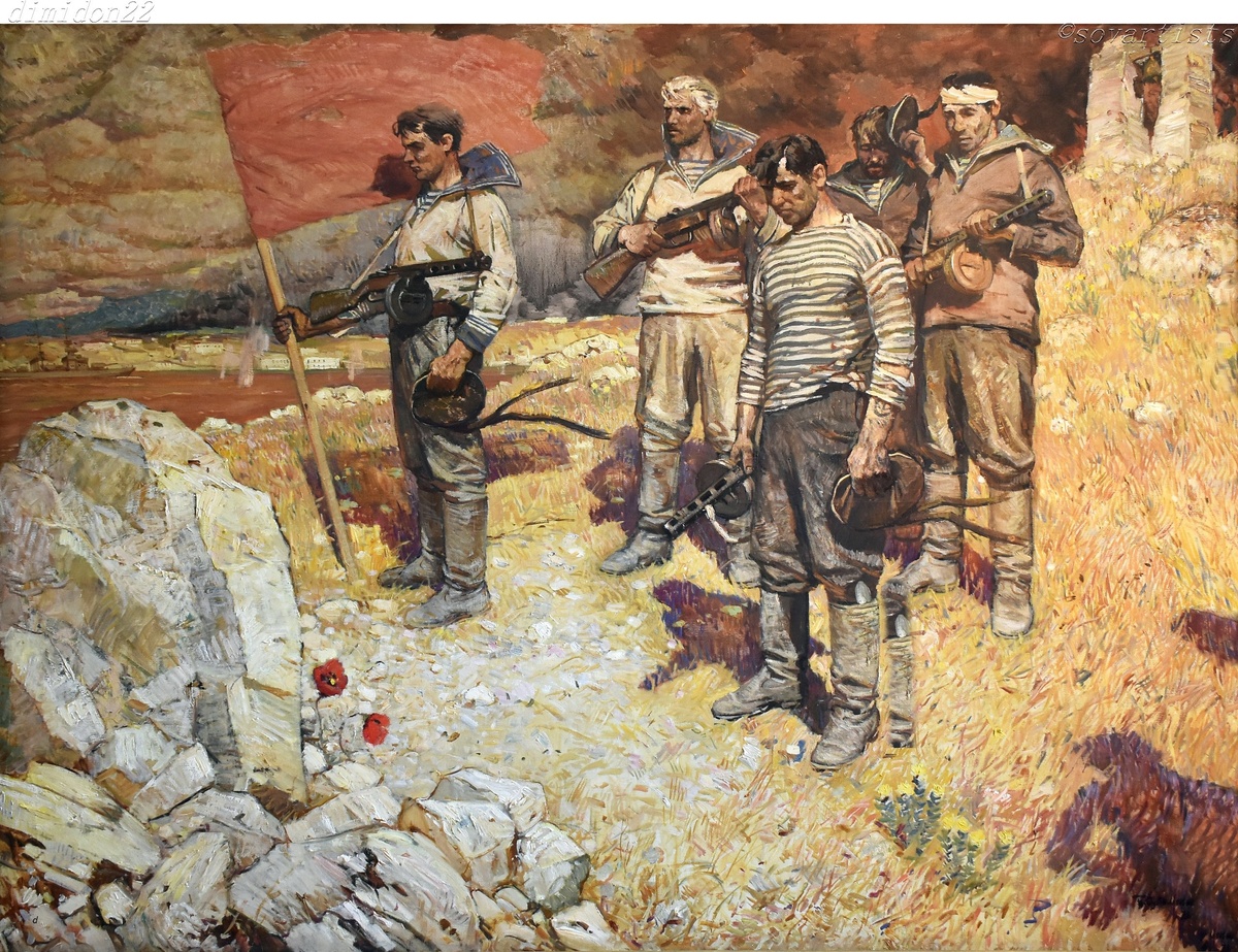 Сулименко Пётр Степанович (16(29).07.1914, Екатеринодар - 1996, Киев). «Во имя Родины». 1973 год. Холст, масло; 165 х 220 см.; (Городской историко-художественный музей города Стаханов ЛНР).