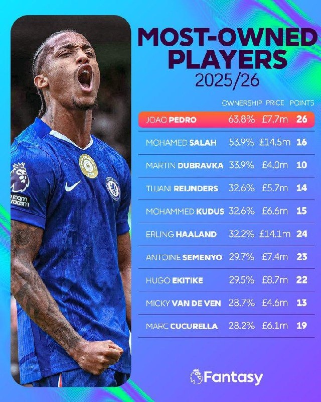 Самые популярные игроки в официальной фэнтези-игре Премьер-Лиги 🔝
