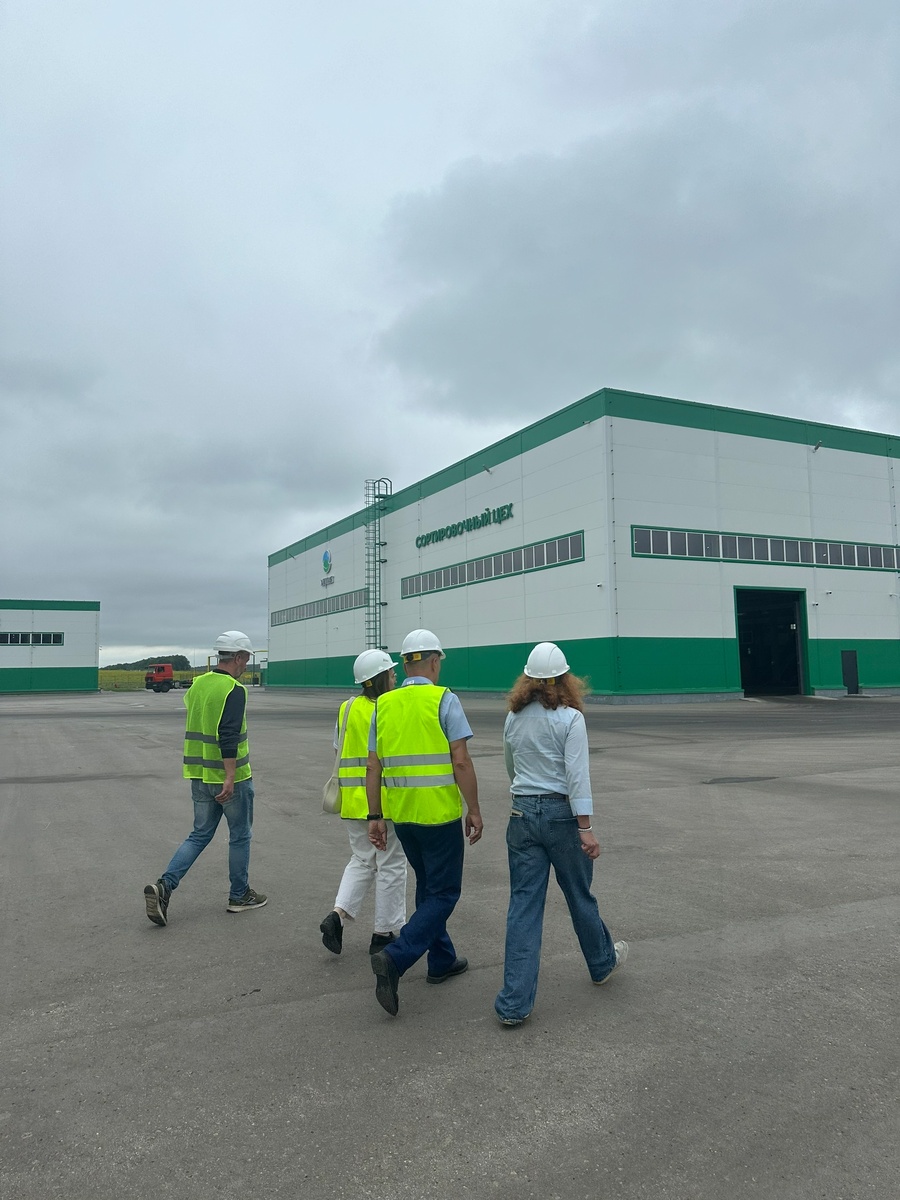 Активисты общественной организации «Экологическая защита» посетили «Экотехнопарк» — инновационный комплекс по переработке отходов компании ООО «Хартия». Комплекс запущен в работу 2 сентября 2024 года и уже привлек к себе внимание специалистов в сфере обращения с отходами со всего мира. Первым пунктом посещения стал мусоросортировочный цех. Здесь происходит выгрузка и предварительная сортировка отходов с помощью ручного труда и автоматизированных систем, использующих оптическое распознавание и искусственный интеллект для выделения полезных фракций. Разгрузка специализированного транспорта, перевозящего отходы раздельного сбора, организована на отдельной линии, что обеспечивает эффективную обработку отходов и увеличение количества извлекаемых вторичных материалов. Затем экологи посетили цех бесконтактного расщепления полимеров. Здесь происходит химическое разложение отходов при помощи технологии низкотемпературного пиролиза. В процессе образуется газ, а также пиролизная жидкость, кот