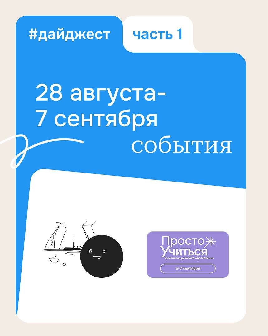 Вот это начало осени! • 6-7 сентября Фестиваль детского образования «Просто Учиться» Севкабель Порт https://vk.cc/cO4oUE • 7 сентября 17.00 Вручение премии «Брендобр: Репутация. Петербургский выбор» Севкабель Порт https://vk.cc/cOZdlR Ещё больше событий и летних программ на нашем сайте в Календаре событий.