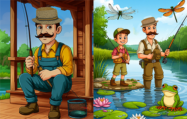 Дядя Юра любил ловить рыбу удочкой. Я, маленький мальчик, постоянно просил его взять меня с собой. Однажды мы отправились на речку. Светило солнце, пели птицы, стрекозы кружили над водой. Мы шли вдоль берега, где среди белых кувшинок сидели лягушки, ловя мух. Наконец, мы добрались до заветного места среди ив. Это была тихая заводь, идеальное место для рыбалки. Мы приготовили тесто с подсолнечным маслом, скатали шарики и надели их на крючки. Забросили удочки. На приманку клевали только мелкие пескари. Конечно, в реке водилась и более крупная рыба, но наша наживка её не привлекала.