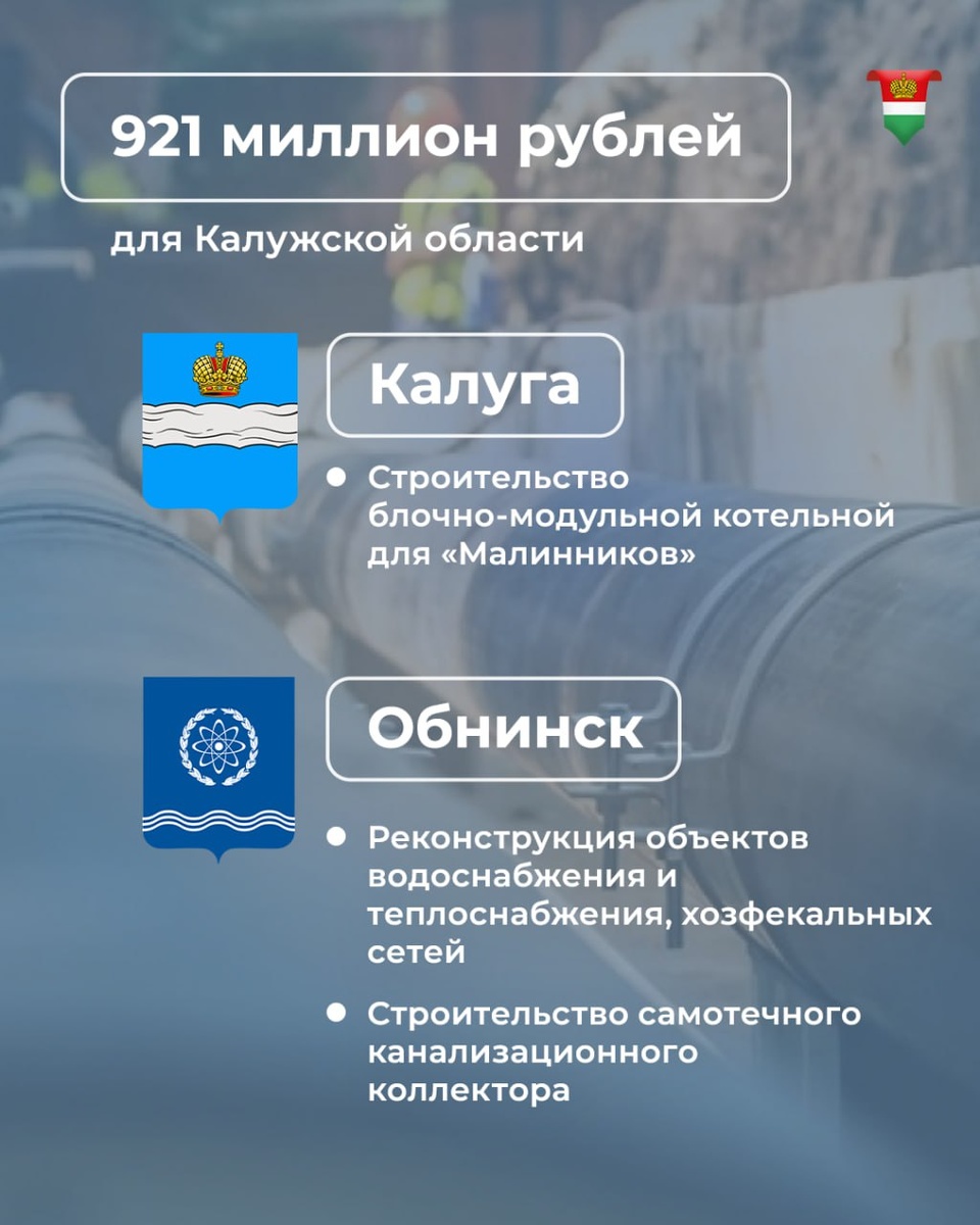 🟢В Калуге и Обнинске обновят коммунальные объекты за счёт инфраструктурных кредитов
