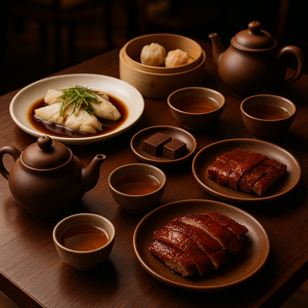 В Китае чай всегда был больше, чем просто способ утолить жажду. Его умели сочетать с едой, подчёркивая вкус блюд и раскрывая сам чай по-новому. Сегодня этот опыт можно перенять и дома, сделав чаепитие настоящим гастрономическим удовольствием. Чай, как и вино, обладает богатой палитрой вкусов: цветочные, фруктовые, дымные, ореховые, медовые ноты. Если правильно подобрать сорт, он способен усилить вкус блюда и сделать его глубже. Зелёные чаи — лёгкие, свежие, с травяными нотами. Они подчёркивают нежность рыбы, креветок и суши. В Японии и Китае часто подают зелёный чай вместо вина к морской кухне. Белый чай обладает мягким сладковатым вкусом с цветочными и мёдово-фруктовыми оттенками. Он идеально подходит к лёгким десертам: чизкейку, бисквиту, пирожным с ягодами. Улуны отличаются насыщенным вкусом с карамельными, фруктовыми и иногда дымными нотами. Они отлично гармонируют с жареным мясом, копчёностями, блюдами с орехами и соевым соусом. Китайские красные чаи (например, Цзинь Цзюнь Мэй) им