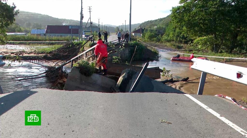 [ Смотреть видео на сайте НТВ ] На Сахалине, где накануне из-за проливных дождей были затоплены десятки домов, приступили к ликвидации последствий наводнения и оценке ущерба. Вода отступает, но несколько сел до сих пор отрезаны от большой земли. В селе Колхозное разрушен мост, лекарства и продукты первой необходимости туда сейчас доставляют на лодках. Спустя сутки после наводнения на юге Сахалина река Казачка постепенно возвращается в свои берега. Но помощь спасателей жителям пострадавшего от стихии села Колхозное понадобится еще долго. Автомобильный мост, который соединял две части населенного пункта, полностью разрушен. Чтобы люди смогли добраться с одного берега на другой, пока не построят новое сооружение, сотрудники МЧС организовали лодочную переправу. Число пострадавших от паводка домов увеличилось вдвое — сегодня их в списке 130. Некоторые были затоплены по самую крышу. И теперь, когда вода отступила, хозяева не узнают родной домашней обстановки. На полу толстый слой ила, стены