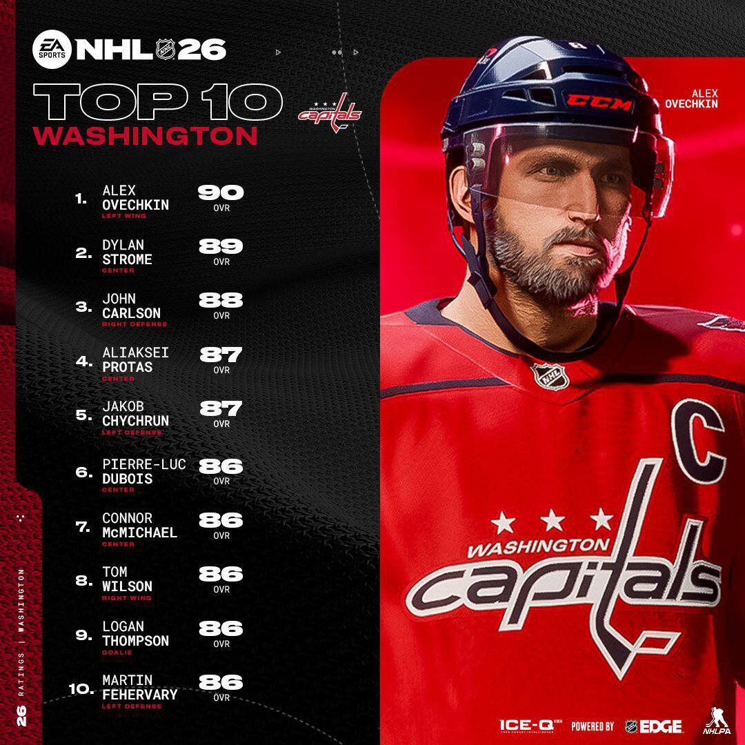 Александр Овечкин в новой NHL26 получил рейтинг 90. Самый высокий в своей команде.