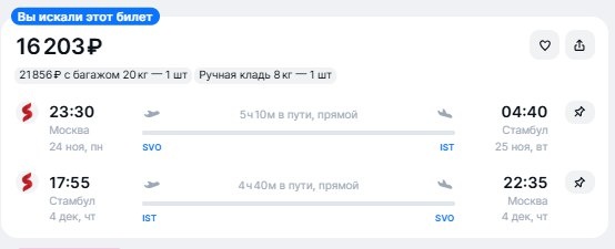 ✈️Москва - Стамбул (Турция), прямой рейс туда и обратно за 16200 рублей 24 ноября - 4 декабря - https://checkintime.ru/mv2y 🏖 Поиск туров | ✈️Авиабилеты